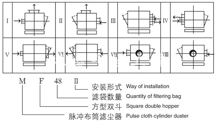 MF- II方型脈沖布袋除塵器是在MF- Ⅰ型的基礎(chǔ)上經(jīng)改進(jìn)修改而成的。